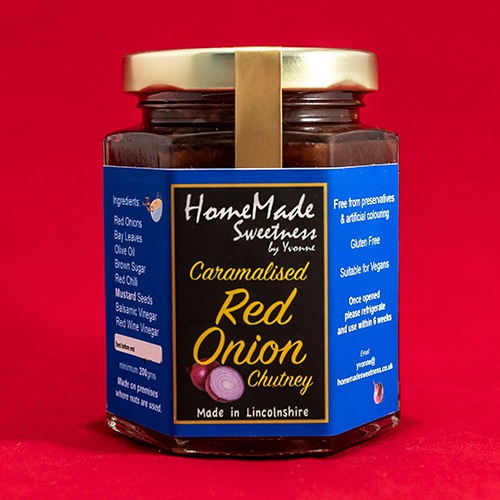 Red Onions, Red Chillies, Bay Leaves, Olive Oil, Mustard Seeds, Balsamic Vinegar, Red Wine Vinegar, Brown Sugar.