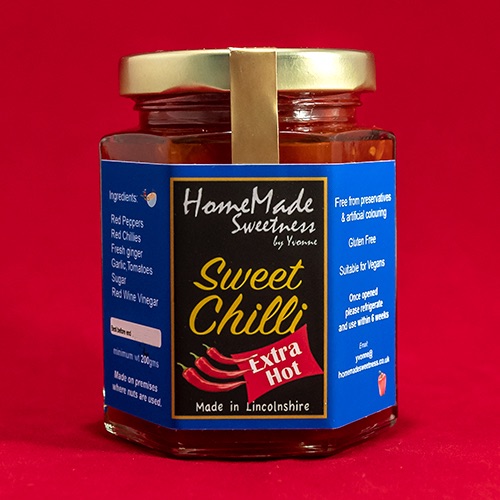 Seriously HOT with Birds Eye Chillis, Red Peppers, Red Chillis, Fresh Ginger, Garlic, Tomatoes, Sugar and Red Wine Vinegar.