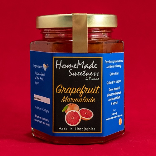 Made with juice, flesh and zest of fresh Grapfruit and sugar.